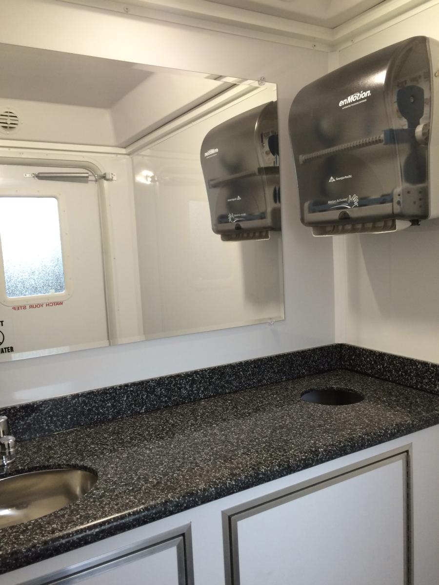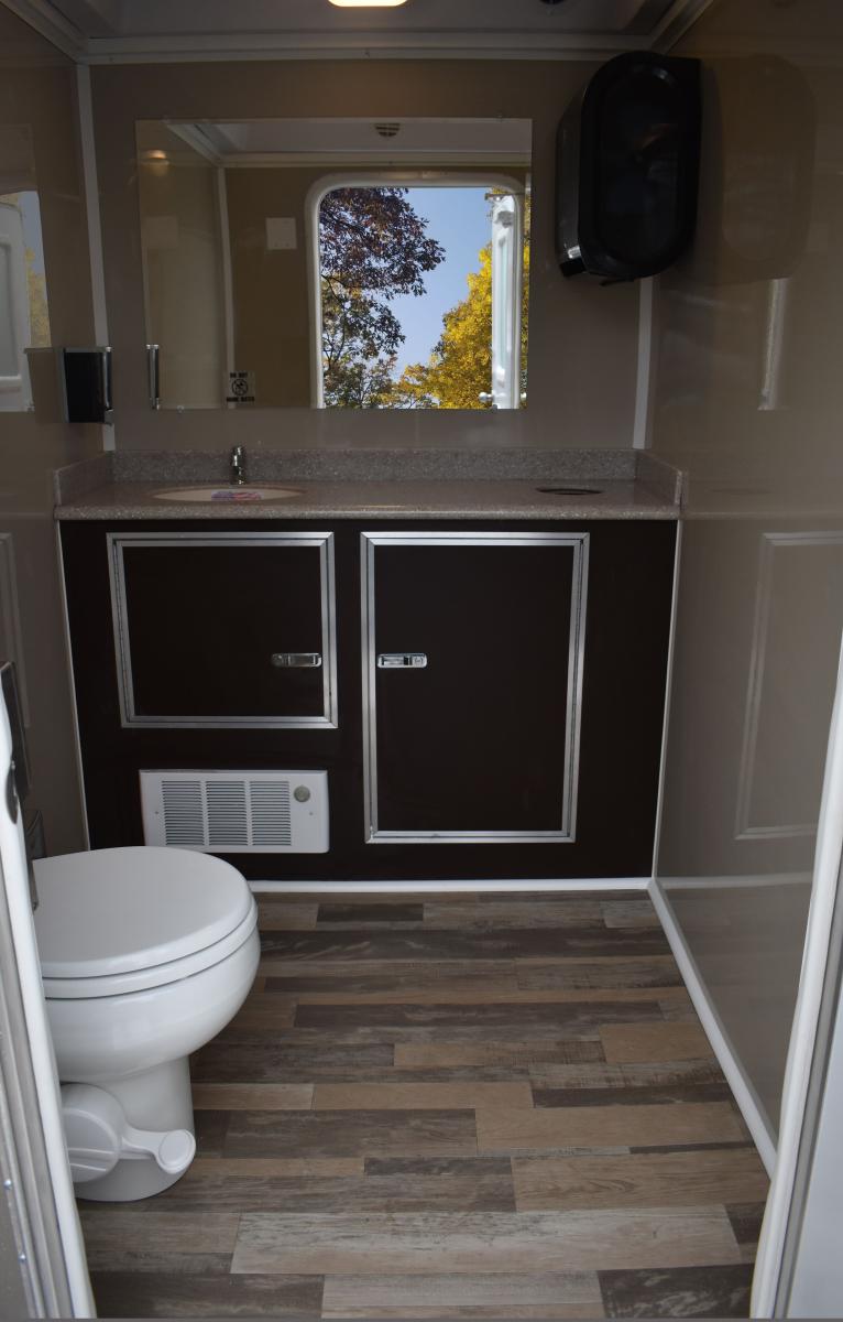 Experience complete privacy. Each unit has individual stalls that offer a private restroom and vanity. Unlike traditional porta-potties, our trailers are designed with superior sound insulation, ensuring a level of acoustic privacy that respects the dignity of every user. After all, what happens in the restroom should stay in the restroom.