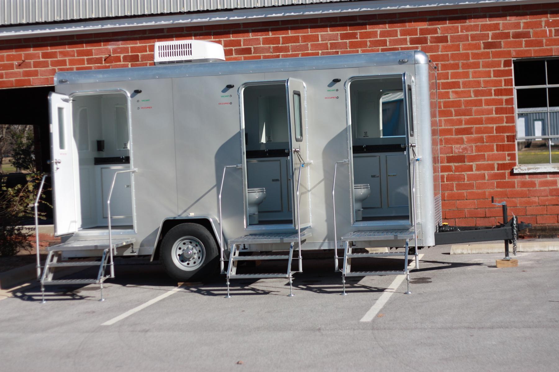 No one likes to stand in line, especially at a porta-potty. The lines are slow, and the blue plastic box is less than inviting. Your guests deserve three-station, climate-controlled, bathroom trailers.
